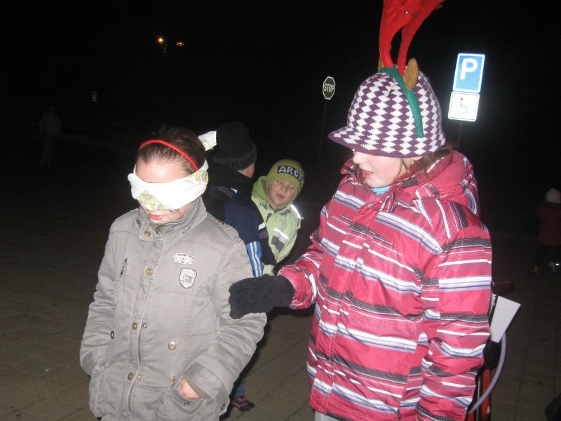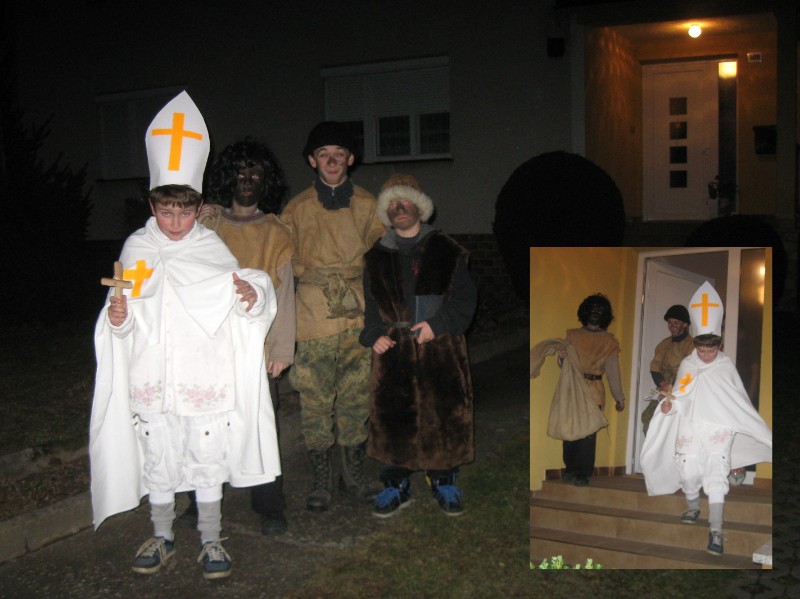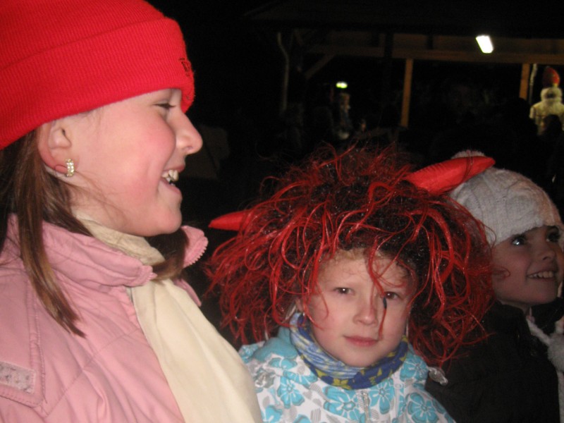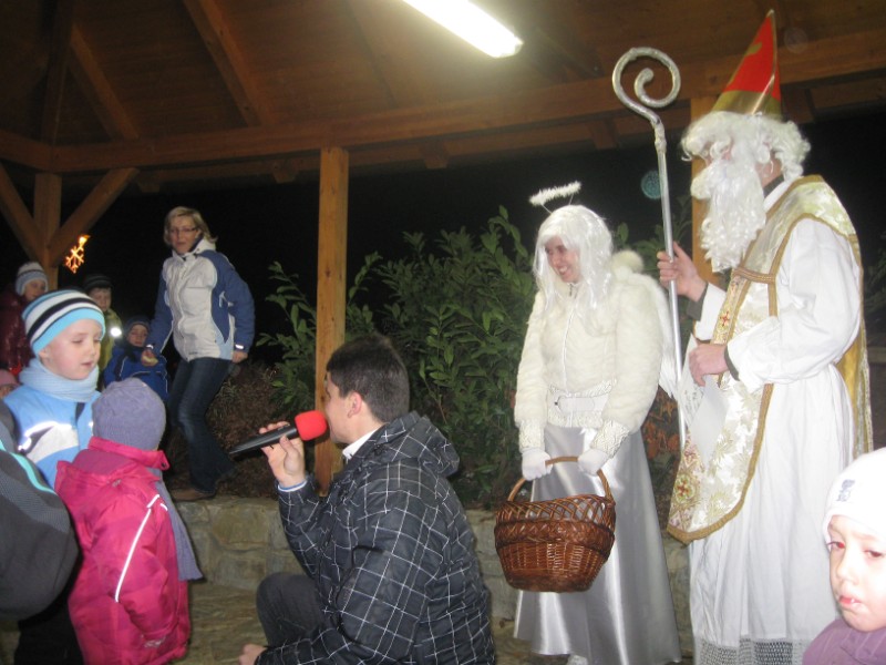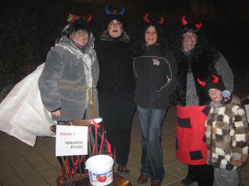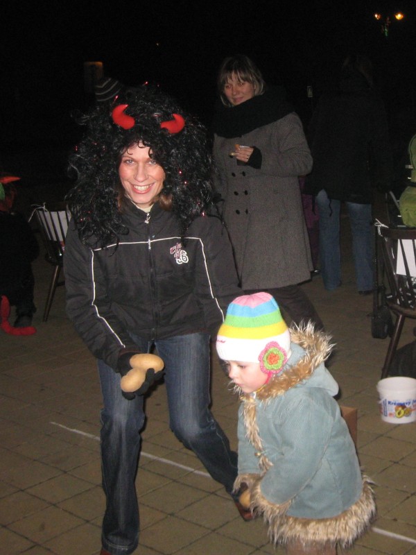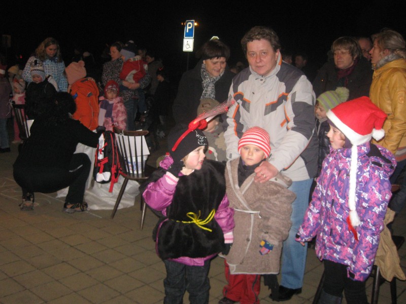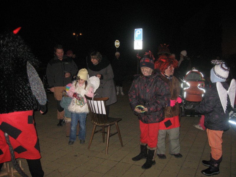 20111202 - Mikuláš, andělé a čerti před naším obecním úřadem