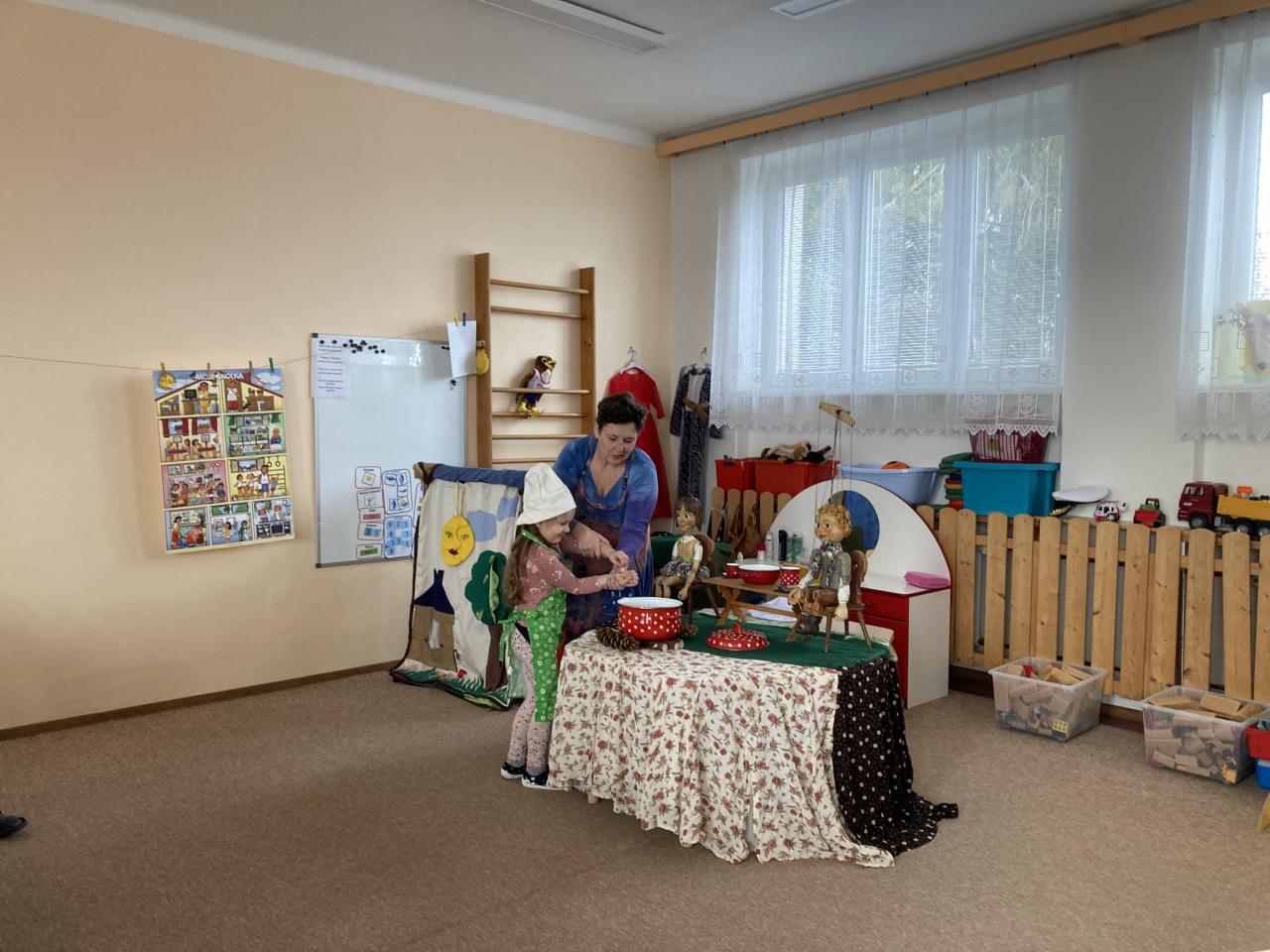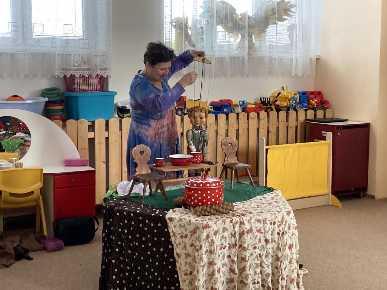 Dnes 13.3. děti v naší MŠ shlédly loutkové představení. Pohádka s názvem "Sekyrková polévka" se dětem moc líbila.